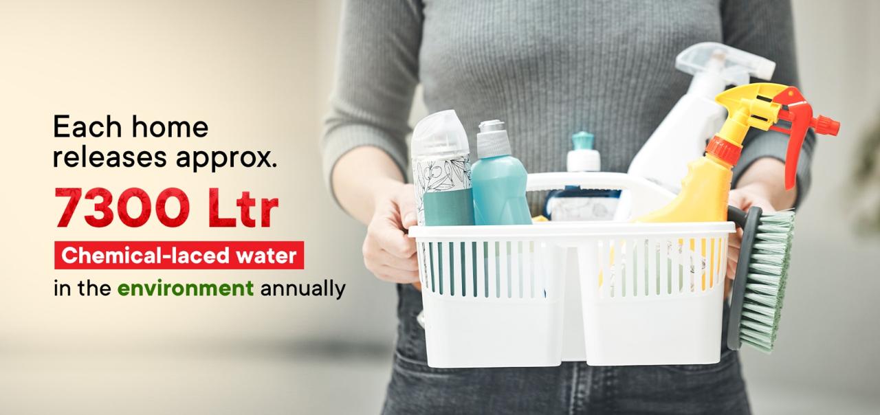 Around 80,000 to 140,000 chemical contaminants from cleaning products can be found in our wastewater, causing